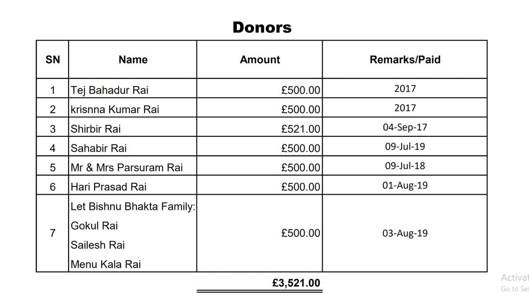 Note: When transferring money, please write your name as reference and inform donated amount to Mr Krishna Kumar Rai, Treasurer at 07588597195.